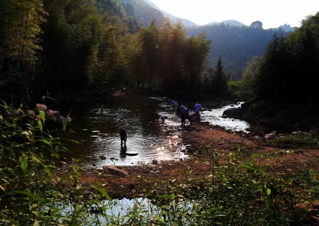 溪水清澈见底,