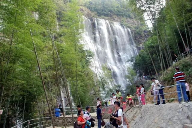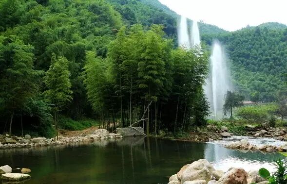 瀑布藏身在竹海之中,