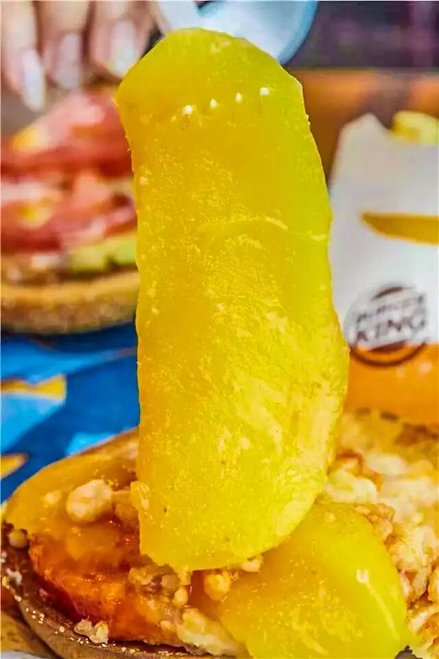 汉堡里塞了两块硕大的芒果肉,第一次看见芒果汉堡的搭配,这是什么操作?
