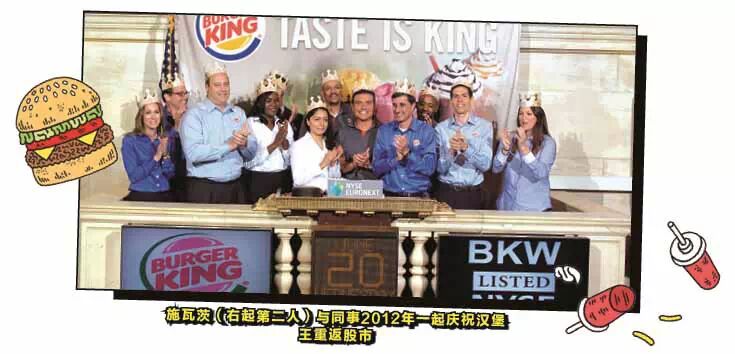 汉堡王首席财务官科布佐也在现场。谈到再融资的话题时,他措辞暧昧,但足以吊人胃口。他说,“那么做可以释放相当数量的现金,从而让我们有可能回馈给股东。”他还提到,汉堡王在告别法国市场15年之后已经重返当地。“他们还记得皇堡,”他说,“在机场的时候,安检人员看到我们衬衫上的汉堡王标识时问我们,‘汉堡王?在哪里?’”