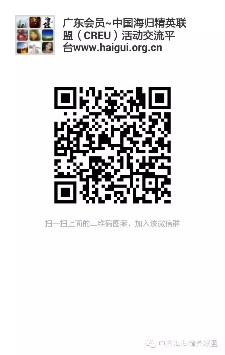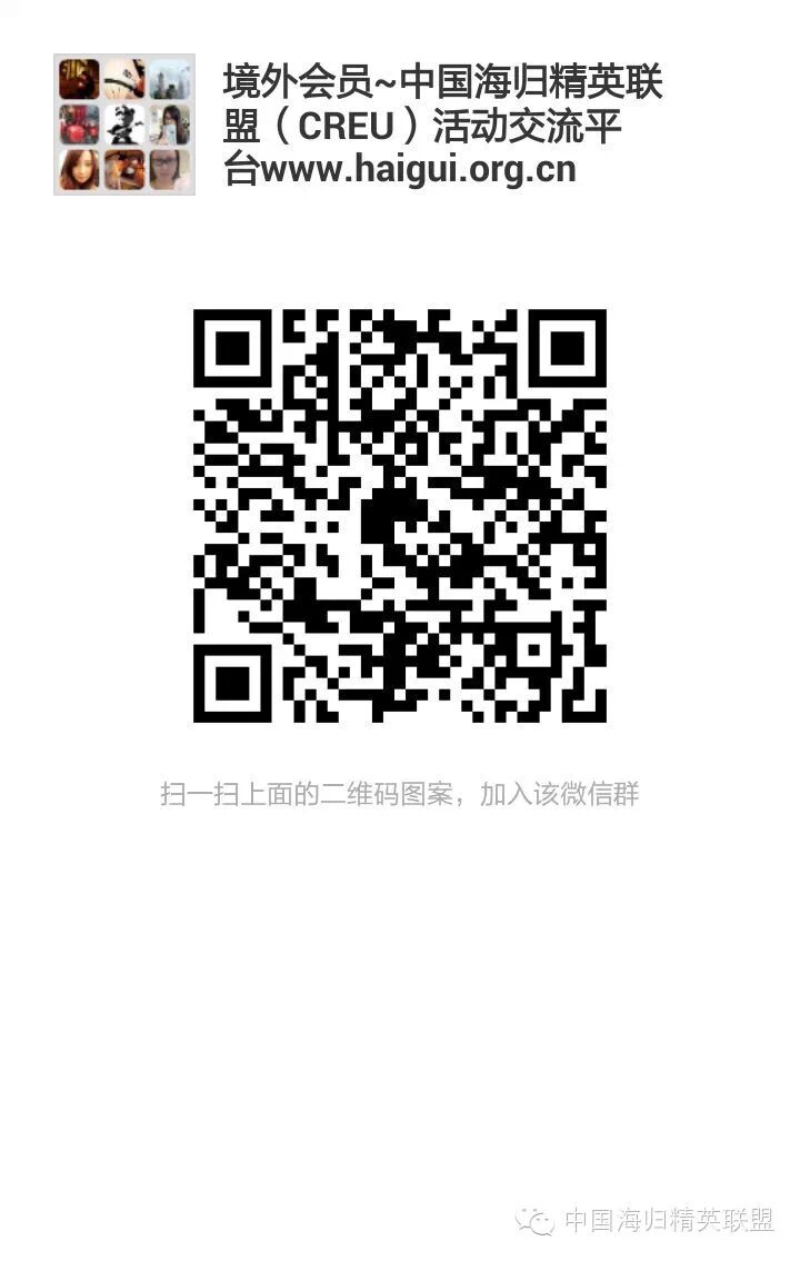 中国海归精英联盟www.haigui.org.cn为中国精英阶层的联盟性质组织机构【ChinaReturnees & Elite Union】(CREU),由海归学子、商界精英以及其他行业领导者组成。联盟以“海纳百川,归之若水,精诚团结,英风亮节”为联盟宗旨。组织基金股权项目创投,完善自身职业发展,维护联盟成员合法权益,促进商业项目合作以及服务回报社会大众。欢迎关注中国海归精英联盟微信公众号haiguijingying