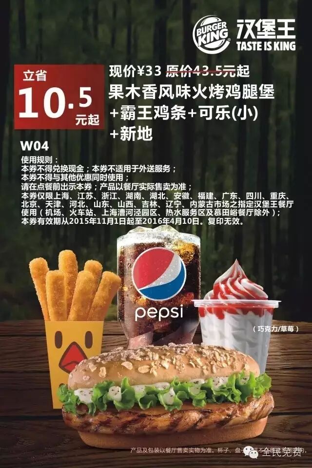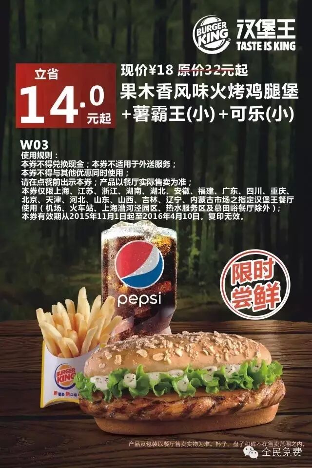 此优惠券限上海、江苏、浙江、湖南、湖北、安徽、福建、广东、四川、重庆、北京、天津、河北、山东、山西、吉林、辽宁、内蒙古市场之制定汉堡王餐厅使用(机场、火车站、上海漕河泾园区、热水服务区及慕田峪餐厅除外);