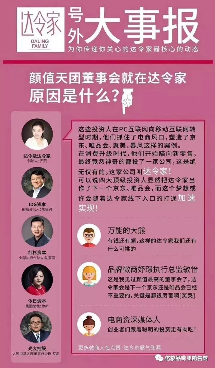 优势5、达令家是由齐燕、熊晓鸽、沈南鹏、徐新、艾渝组成的豪华董事会