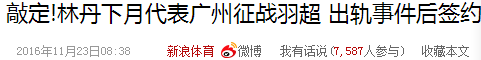 出轨后,林丹的事业也并没有太大影响,广州粤羽俱乐部的董事长兼总教练高军向他抛出了“橄榄枝”。即将在12月6日揭幕的新赛季羽毛球超级联赛上,林丹确认加盟广州粤羽队并担任男单头号主力。