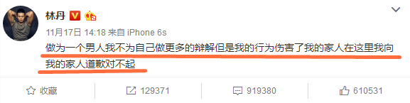林丹本人也在微博勇于承认错误,在微博向家人道歉对不起。