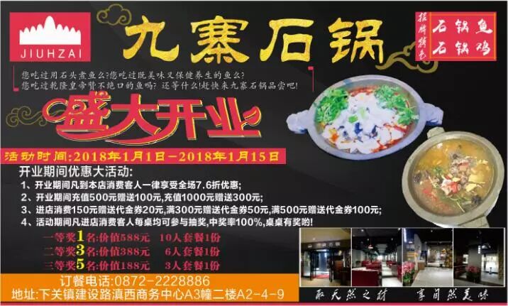 石锅鱼、石锅鸡 活动时间:2018年1月1日-1月15日
