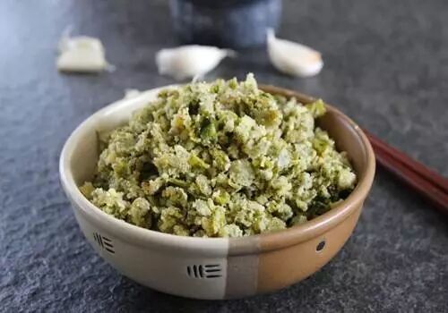 九成榆钱儿搅合一成玉米面,上屉锅里蒸,水一开花就算熟,只填一灶柴火就够火候儿。然后,盛进碗里,把切碎的碧绿白嫩的春葱,泡上隔年的老腌汤,拌在榆钱饭里;吃着很顺口,也能哄饱肚皮。