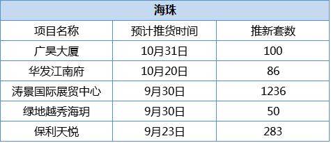 海珠的情况与天河差不多,一手住宅新货相当紧缺,仅绿地越秀海玥带来50套住宅,另外华发江南府产品性质待定。