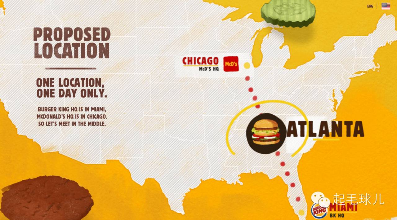 那我们在哪儿做这个McWhopper呢?BK的总部在迈阿密,麦记的总部在芝加哥,那么我们选个中间的地方,就……亚特兰大吧!