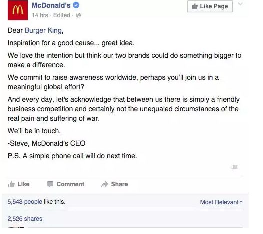 导语这是一场Burger King和麦当劳之间的世纪撕逼大战...