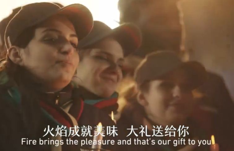 大致意思就是“烤汉堡前辈朝你扔了个新手礼包(烧烤架),祝你早日学会烧烤,体验到玩火的乐趣!节日快乐”