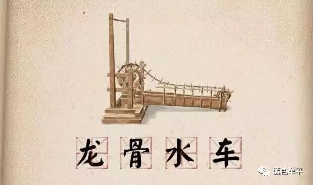 龙骨水车亦称“翻车”、“踏车”、“水车”,省称“龙骨”。汉族历史上的灌溉农具,流行于我国大部分地区。这种提水设施历史悠久。因为其形状犹如龙骨,故名“龙骨水车”。一般安放在河边,下端水槽和刮板直伸水下,利用链轮传动原理,以人力(或畜力)为动力,带动木链周而复始地翻转,装在木链上的刮板就能顺着水把河水提升到岸上,进行农田灌溉。