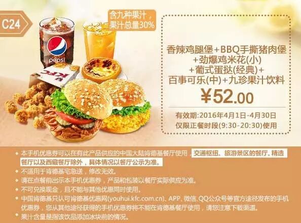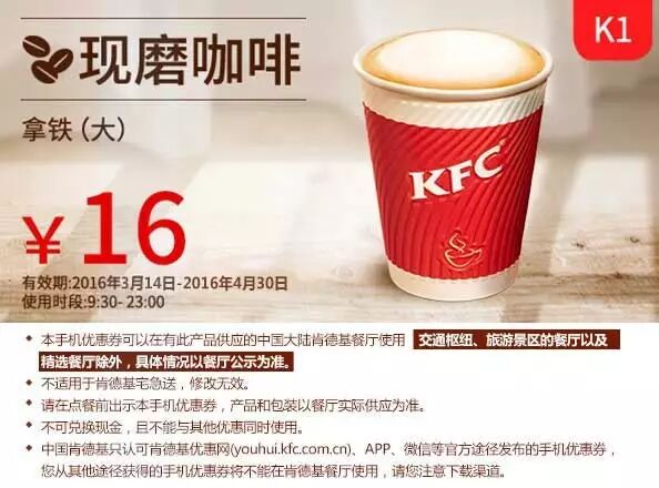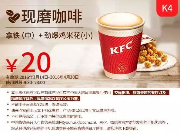 KFC、M记、汉堡王、星巴克、真功夫最新5月电子优惠券!收藏~