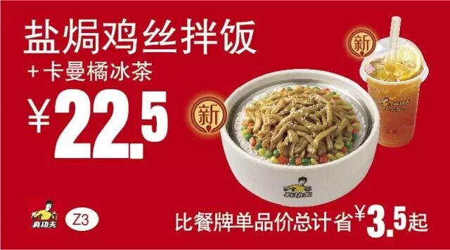 盐焗鸡丝拌饭、卡曼橘冰茶、蓝莓布丁、鲜肉粽、豆沙粽属于短期促销产品,售完即止