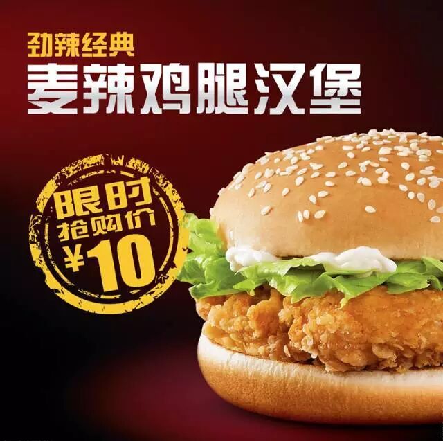麦辣鸡汉堡,限时10元特价