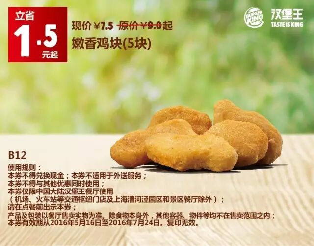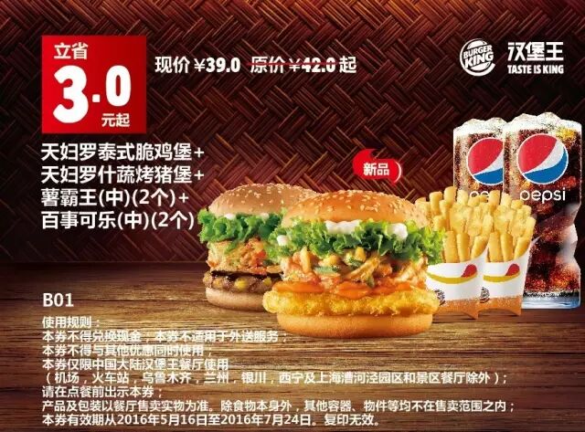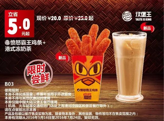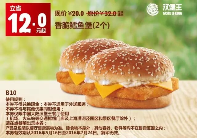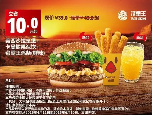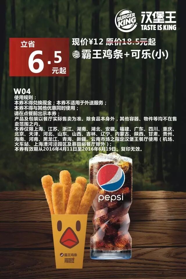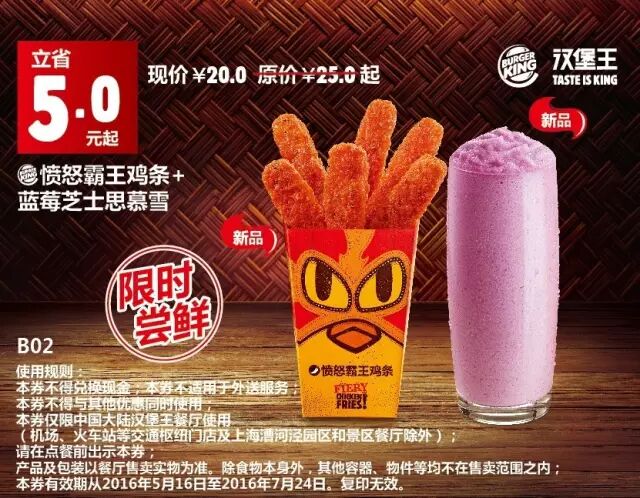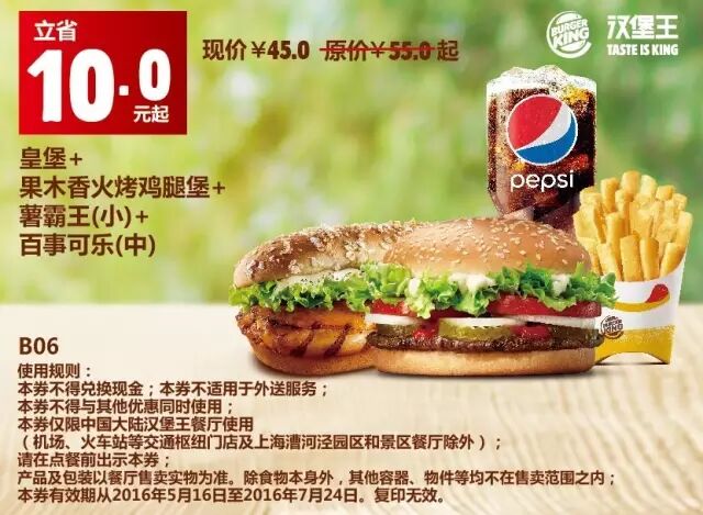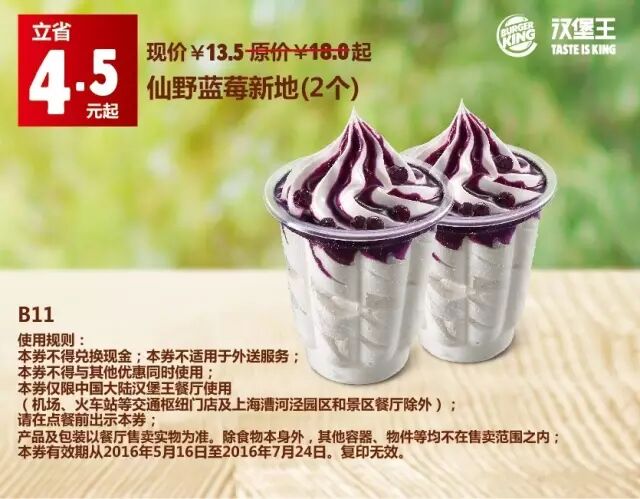 1.本券仅限全国汉堡王餐厅使用