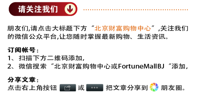 (请关注财富购物中心公众帐号:FortuneMallBJ)