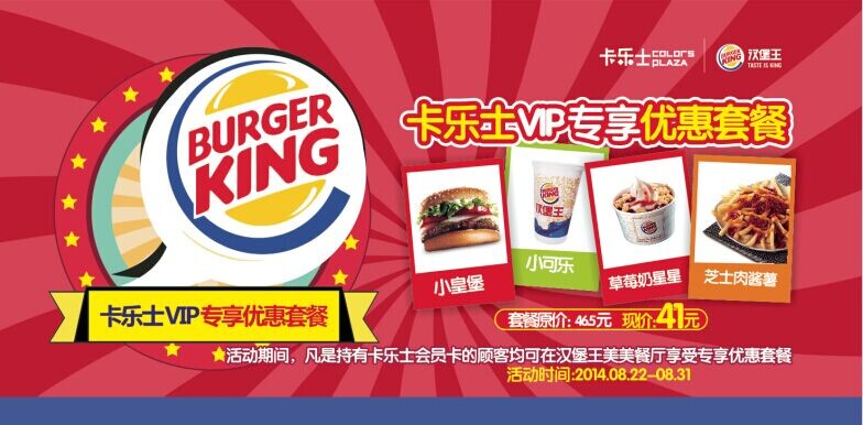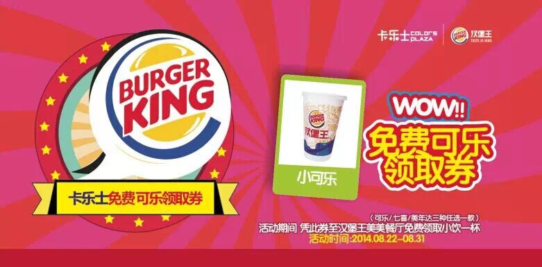 顾客持活动期间任意金额收银条,至汉堡王美式快餐厅