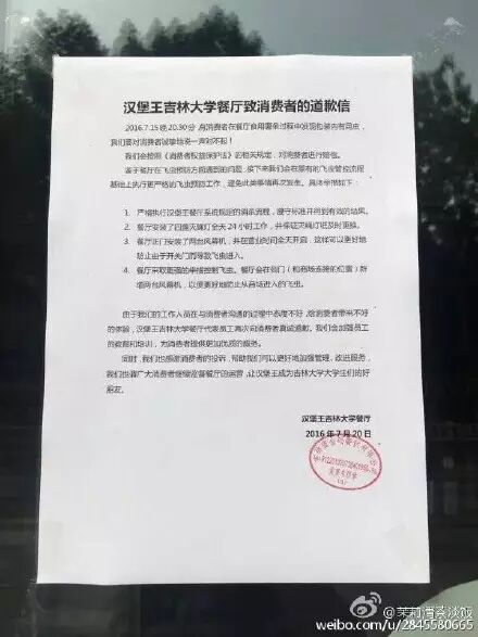 7月16日,据网友@忍者适配小型饭盒称,在汉堡王吉林大学店吃出油炸虫尸,并@汉堡王中国,请求一个合理的解释。