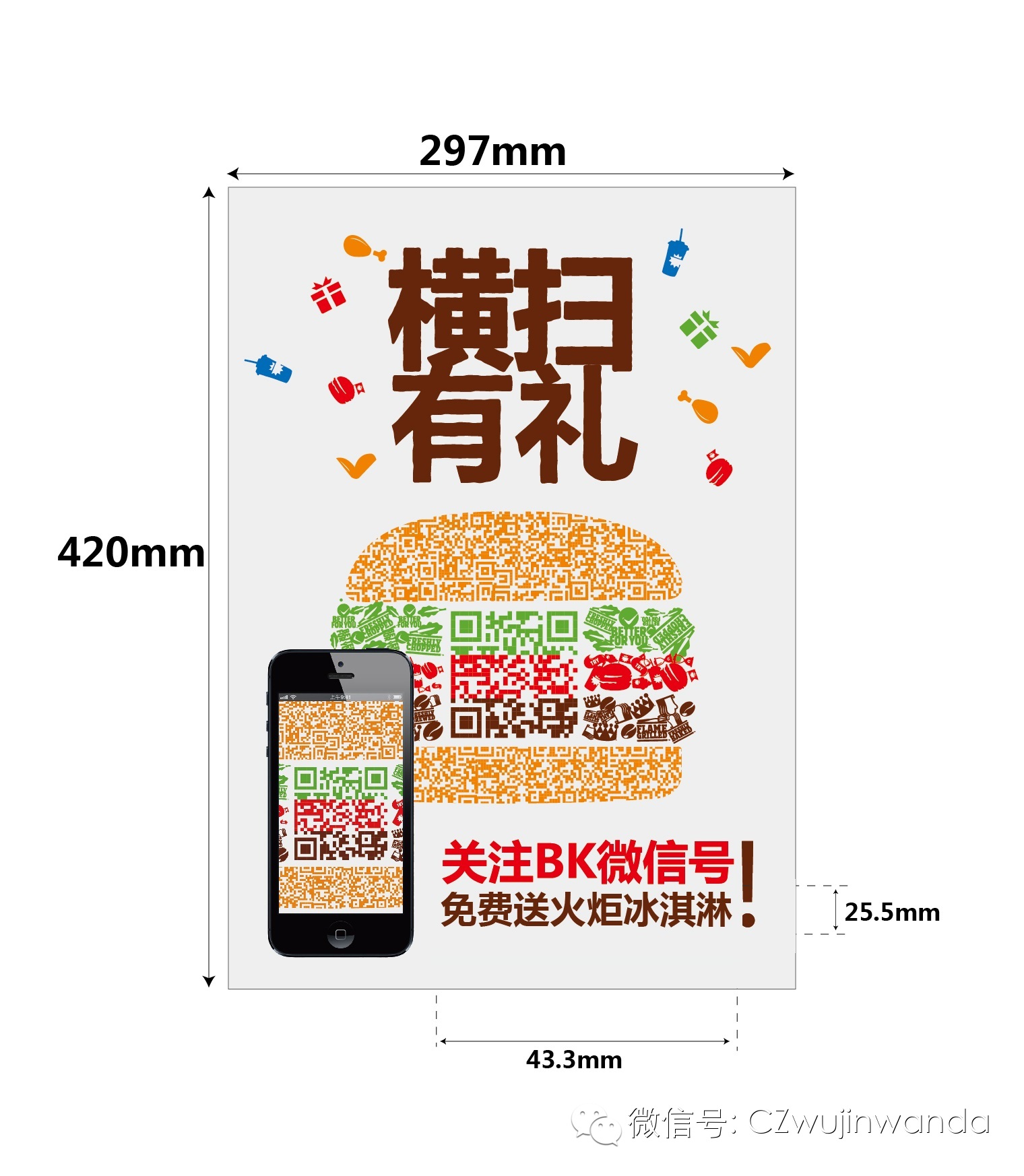 扫描汉堡王中国二维码,加关注微信,2015年1月12日前内即可到店免费换领火炬冰淇淋一个