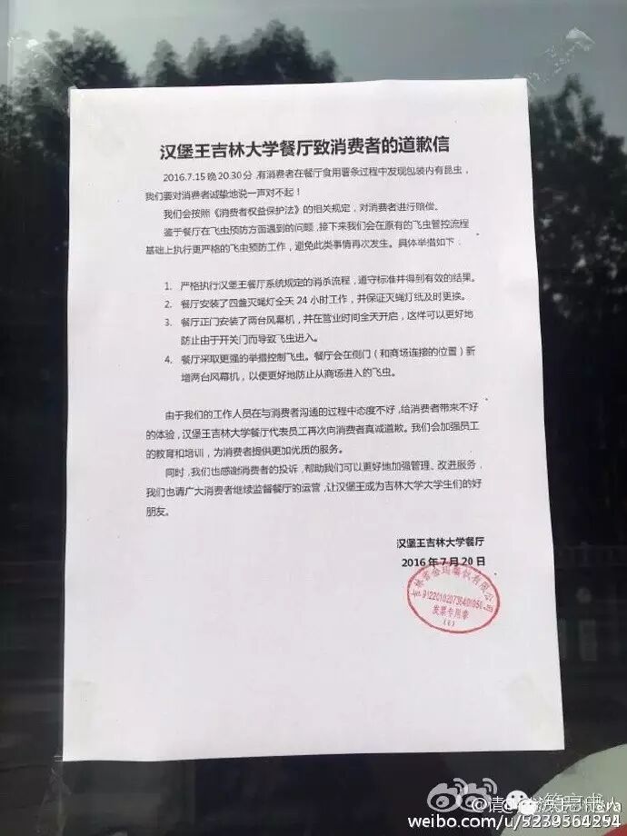 今早路过汉堡王餐厅,门口贴着这样的道歉信。