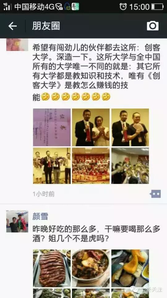 他们都是加入创客天下的合伙人,有刚刚毕业的大学生,有有身价过千万的老总,有身无分文负债学历不高的普通人,,还有年过5询的阿姨,他们都在奋斗。。。。。你有什么权利不奋斗,加入张辉老师的《创客天下》让你脱胎换骨,让你的梦想成真,让你可以和亿万富翁的老师绑在一起合伙打天下