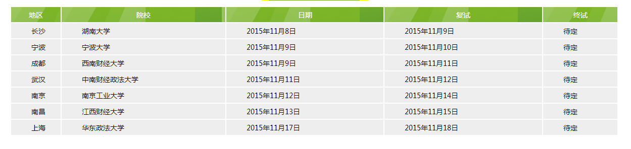 http://special.zhaopin.com/campus/bj/2015/zgyc100934/jobs.html (一)网上报名。具体报名时间为2015年10月26日-11月26日。请应聘者注册并登录智联招聘网申系统,在线填写个人简历,完成职位申请。(二)资格审查与甄选。我行将根据招聘条件对应聘者进行资格审查,并根据岗位需求分布及报名情况等,择优甄选确定入围笔试人员。(三)笔试。总行将于2015年 12月12日在全国部分城市组织统一笔试。(四)面试、体检及录用等后续工作具体安排另行通知,请及时关注。http://job.sinopec.com/index.aspx2.请应聘毕业生登陆中国石化人才招聘网站(以下简称招聘网站)注册,在线填写简历,上传学习成绩单、外语成绩证明、获奖证书等附件,申请应聘岗位。每名毕业生最多可应聘两个岗位(可为同一单位或不同单位),岗位应聘申请一经提交,将无法修改,请慎重考虑后选择。3.报名时间为2015 年10 月27 日00:00-11 月20 日17:00。1.2015 年10 月27 日-11 月25 日,招聘单位对照招聘公告中的招聘基本条件和招聘信息中的岗位招聘条件,对应聘毕业生的毕业时间、所学专业、学历(学位)等进行资格审查。学历按应聘毕业生填报的最高学历认定。所学专业按应聘毕业生最高学历对应的所学专业认定,辅修2.招聘单位对照应聘毕业生上传的本人学习成绩单、外语成绩证明等附件,对应聘毕业生的院校、专业、外语成绩、主要课程等信息进行查证。相关信息与注册简历中填报信息不一致的,以上传附件为准。3.符合招聘条件的毕业生给予资格审查通过。不符合招聘条件、主要材料不全或主要信息不实的应聘毕业生,资格审查不予通过,招聘单位通过招聘网站发送"站内消息"告知。毕业生可通过招聘网站"个人2.中国石化委托第三方考试机构组织实施统一初选考试。第三方考试机构全程负责考场准备、考试通知、准考证生成、试卷命制、监考组织、判卷评分等全部考务工作。统一初选考试时间为2015 年12 月5 日下午14:00,考试时间、内容方式、注意事项等具体安排另行公告。3.招聘单位根据参加统一初选考试应聘毕业生的成绩,按最高不超过8:1、最低不低于3:1 的比例(考试人数少于发布招聘需求人数3 倍的按实际人数),分招聘岗位择优确定测试面试人选,并在招聘网站公布测试面试人员名单。统一初选考试成绩不带入测试面试。1.测试面试由招聘单位组织实施。招聘单位通过招聘网站"站内消息"发送测试面试通知,请参加测试面试人员在规定时间内通过招聘网站"个人信息"栏中"站内消息"进行测试面试确认。逾期未确认,视2.参加测试面试时,须携带本人身份证、学生证、就业推荐表、学习成绩单、外语成绩证明等证书证明材料的原件和复印件,以及从招聘网站下载打印的《应聘中国石化毕业生基本信息表》。主要材料不全、3.测试面试主要包括专业测试和综合素质面试,招聘单位根据招聘岗位特点和实际需要,确定测试面试的考核维度、计分规则等。同一招4.招聘单位根据测试面试成绩,分招聘岗位择优提出拟录用人选和递招聘单位拟录用人选和递补人选经本单位领导班子审定后,在招聘网站进行公示,公示期为7 天。公示期满,对反映有严重问题并查有实1.公示无异议人选由招聘单位与毕业生签订就业协议。拟录用人选未在规定时限内完成签约的,视为自动放弃。拟录用人选放弃签约或未在规定时限内完成签约,出现空缺时,按递补人选顺序依次递补。2.请签约毕业生按规定时间到招聘单位办理报到手续,逾期未报到视为自动放弃录用资格。招聘单位对报到毕业生的毕业证、学位证(国(境)外学历学位认证证书)、就业报到证、外语水平成绩证明等相关http://campus.chinahr.com/2016/zkungfu/index.asphttp://campus.51job.com/23ye/sociala.htmØ申请渠道:①前程无忧校园招聘专栏:http://campus.51job.com/cnstrongØ投递简历后,人力资源管理中心将在宣讲会开展前一周统一通过邮件或短信通知学生宣讲会信息。Ø介绍公司的概况和发展规划,以及员工的晋升通道和薪酬体系等;Ø通过初试的人员登陆公司在线测试系统,完成一个半小时的测试;Ø测试内容包括基本工作能力测试、职业性格测试和职业兴趣测试。Ø在宣讲学校安排复试,具体事宜,届时工作人员另行通知。Ø如果您顺利通过最终复试,我公司将随即在学校安排与您的签约,请您提前准备就业协议书。集团地址:浙江省杭州市滨江区滨安路1168号(310053)http://www.yingjiesheng.com/job-002-162-902.html【上海|杭州|西安|其它】上海三盛宏业投资集团2016校园招聘3)校招邮箱:campus@sshy.cn (邮件主题写为:校名-专业-意向岗位-姓名)联系电话:021-67635800-1205 传真:012-67635814【大连|苏州|佛山|青岛|香港】简柏特2016校园招聘http://campus.chinahr.com/2016/Genpact2016/qa.asp【榆林|银川|西安|其它】西部机场集团2016招聘1.全日制院校应往届毕业生,有大型企业工作经历者优先。2.遵纪守法,诚信务实,勤奋敬业,团结合作,具有良好的个人品质和职业道德。3.本科学历的,年龄要求在25周岁以下(1990年10月以后出生);硕士学历的,年龄要求在28周岁以下(1987年10月以后出生)。1.网上报名:有意应聘者,请于即日起点击以下链接进行网上报名(http://www.westaport.com/zhaopinwangzhan/index.asp)。报名时间截至2015年11月3日18:00整,届时报名系统将自动关闭。具体招聘专业、学历、人数、工作地点等详见《西部机场集团2016年度招聘岗位一览表》。2.笔试:经简历筛选