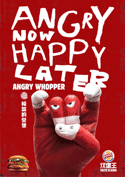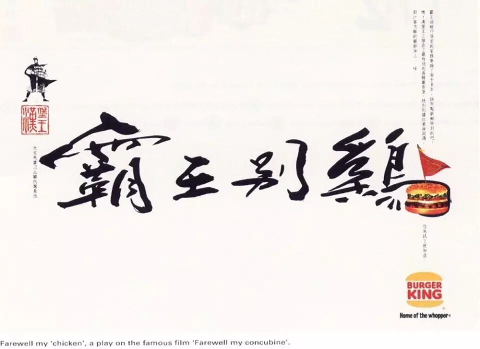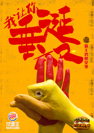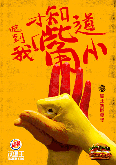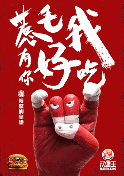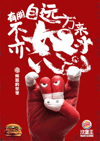 4)入乡随俗本土化创意。汉堡王国内的广告擅长利用成语等本土文化与消费者沟通。
