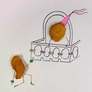 左边的鸡头上面黄色与“M”字的涂鸦,明显又是一场麦当劳与汉堡王之间有关鸡的对战。