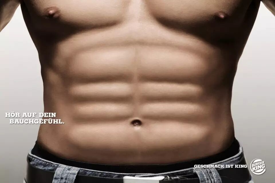 把八块腹肌生动地比喻成汉堡。肚子就是你的直觉,想吃汉堡就吃,反正吃汉堡能吃出“八块腹肌”。只想说,信,你就输了。