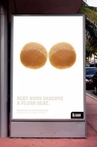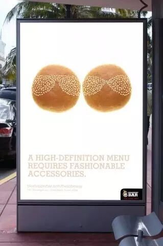 这三幅广告设在迈阿密度假区,将两个汉堡的形象比喻成一对咪咪,又软又有香。所谓“食色性也”,在这个上面,两个国家达到了空前的一致。要是来个汉堡王牌文胸,妹子们,你们要买吗?