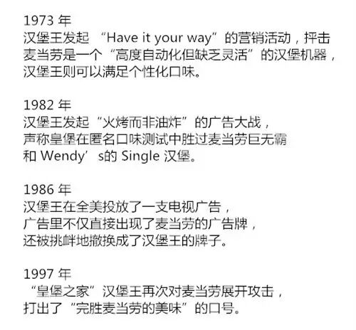 有一种常用的定位叫“比附定位法”,但汉堡王不是攀附“市场老大”麦当劳,而是找出麦当劳的弱点正面交锋,突出自己的优势。