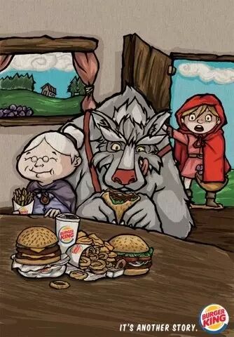 如果童话是另一副模样,那会是怎样的故事?汉堡王大开脑洞,“篡改”经典童话故事。这三幅图,很好地诠释了童话故事人物都爱上了吃汉堡王,你这么信童话故事,你也赶快来尝尝吧~