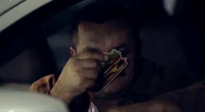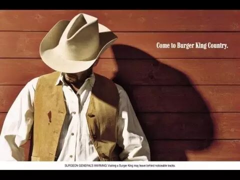 在汉堡王国里,西部牛仔都不抽烟了,反而手拿一根薯条,不骑马反而骑着牛,衣服上还沾了番茄酱。整一部“汉堡王西部乡村片”。