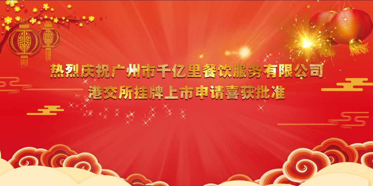 广州市千亿里餐饮服务有限公司挂牌上市申请于2017年12月26日获全球中小企业股权交易中心系统批准,将于2018年1月8日在香港(全球股交所)挂牌上市。此次上市,千亿里餐饮将迎来其发展史上的里程碑和新起点。