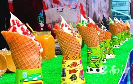 千款精美的风车、热气球、油纸伞将美食节上空装饰一新,成为本届美食节的另一大亮点。在微风下,风车摇曳、油纸伞婀娜多姿、热气球色彩斑斓,光影交杂着美景,很多年轻的食客举起手机,一边品尝美食,一边欣赏美景,定格这美好的瞬间。