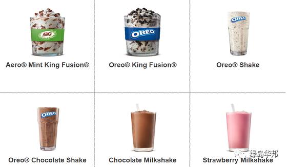 除此之外,汉堡王还有很多口味的奶味饮料,比如巧克力薄荷味道(Aero Mint),奥利奥口味,里面可以吃到巧克力和奥利奥碎哦;还有经典的奥利奥奶昔,巧克力奥利奥奶昔,巧克力和草莓味道的奶昔。