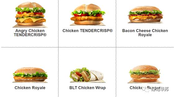 鸡肉系列的有汉堡也有鸡肉卷,爱吃肉的一定要尝试这个angry chicken,鸡排上面抹上一层芝士,炸的洋葱圈,还有爽口的甜椒和生菜西红柿,以及他们自家的angry sauce;tendercrisp里面夹的是肉鸡,肉质更加鲜嫩,上面简单的配了生菜西红柿和蛋黄酱,吃起来比较清爽;chicken royale就是比较简单的鸡肉汉堡了,配的是蛋黄酱,如果觉得肉吃起来不过瘾,也可以点加上bacon的cheese chicken royale。如果吃腻了汉堡,也可以点个他们的鸡肉卷,鸡肉配上培根和浓郁的蛋黄酱哦!