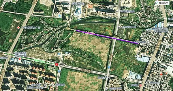 图中紫色线条即为上隆岭路。