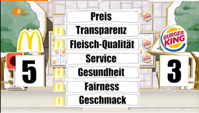 德国各家电视台一直执着于探讨“快餐哪家强”的问题。比如今年,ZDF电视台就对麦当劳和汉堡王进行了对比调查。