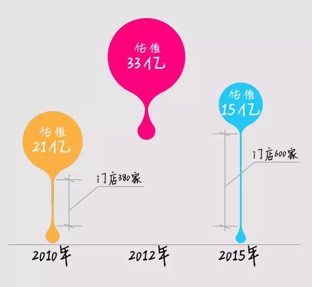 2012年,今日资本以1亿元转让其所持有的真功夫所有股权(3%),也就是说当时真功夫估值达到33亿元;而截至2015,真功夫门店数量达600家,估值仅为15亿。