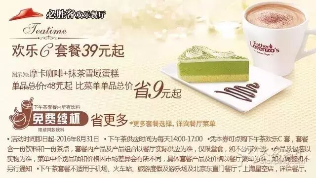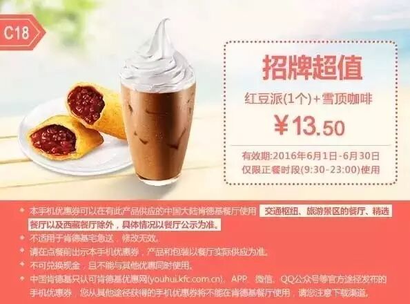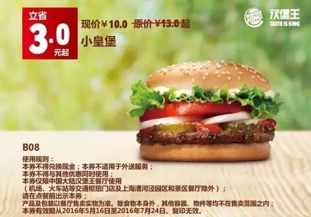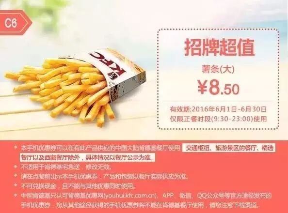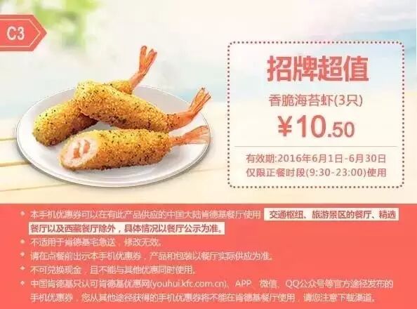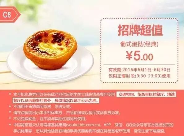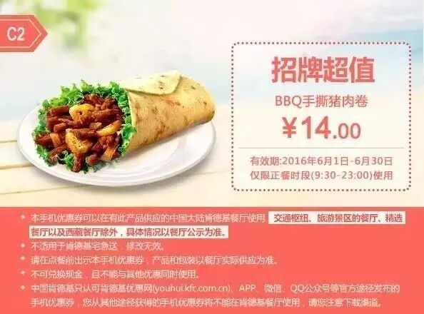 优惠券产品仅限在产品供应餐厅供应时段使用;