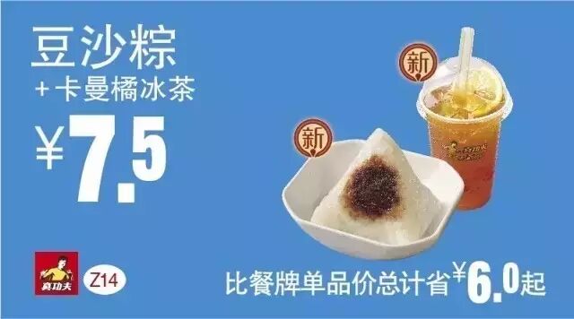 盐焗鸡丝拌饭、卡曼橘冰茶、蓝莓布丁、鲜肉粽、豆沙粽属于短期促销产品,售完即止
