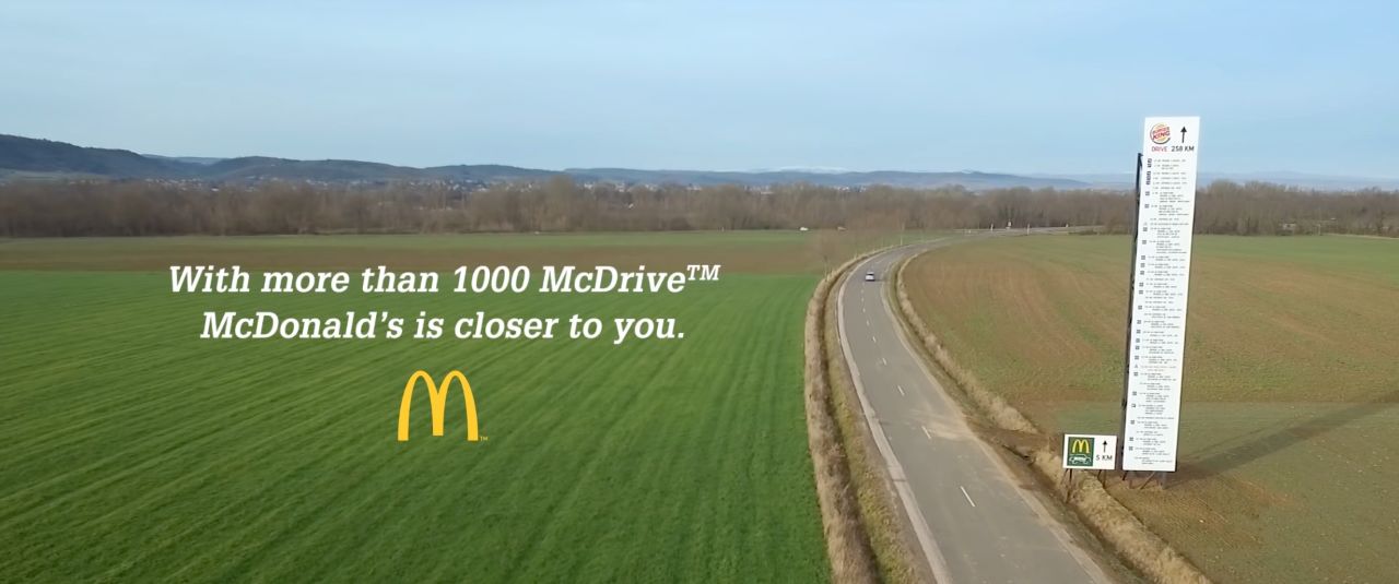 “哪都有我的店,又方便到达,而你汉堡王,店少还难找。”