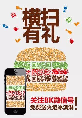 扫描汉堡王中国二维码,首次关注汉堡王中国官方微信,即可到店免费换领火炬冰淇淋一个。