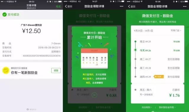 微信支付鼓励金周周都给你送钱花!