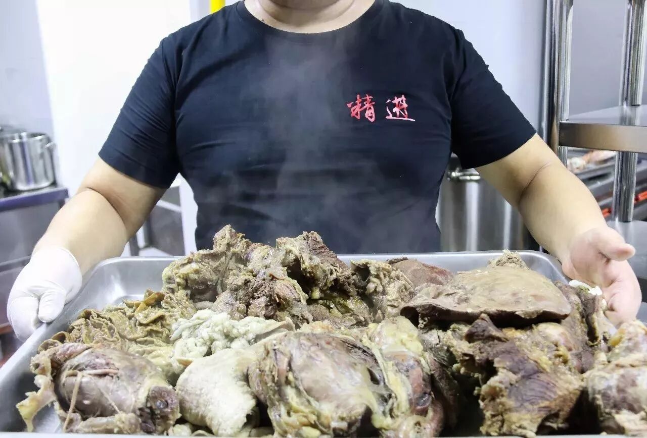 随即将骨汤倒进大口大锅,投入中药香料二次熬制。牛肉牛杂烫过一遍,一碗原汁原味老汤的跷脚牛肉终于get到。
