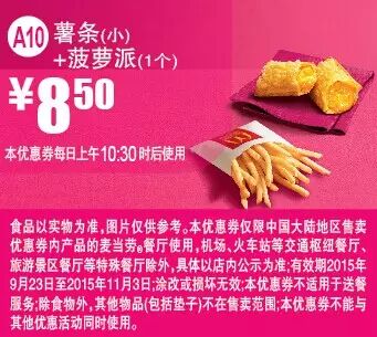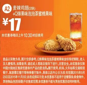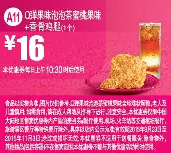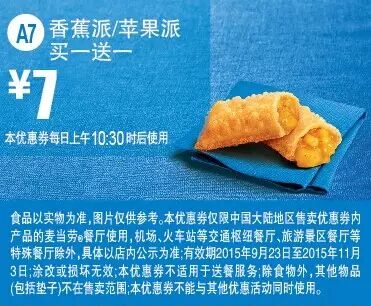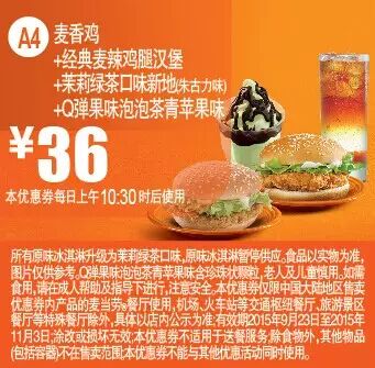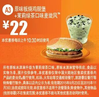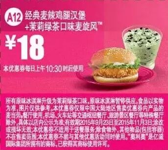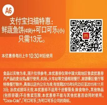 本手机优惠券仅限中国大陆地区售卖优惠券内产品的麦当劳餐厅使用。