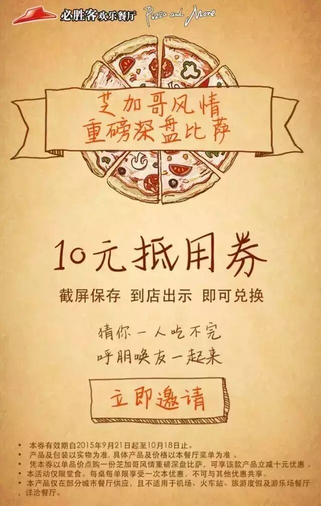 还有【必胜客】芝加哥风情重磅深盘比萨10元抵用券哦~~~