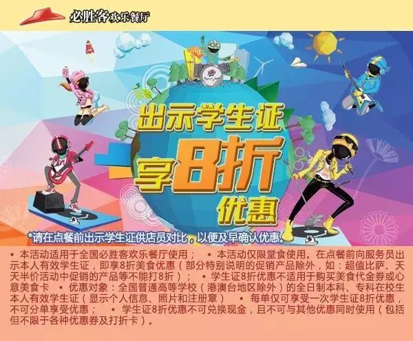 还有还有,只要在点餐前,记得是点餐前,还是学生的你出示你的学生证给店员对比,就可享8折优惠(当然不是所以的都可以啦!!部分特别说明的促销产品除外),详情请看 ↓ ↓ ↓ 优惠券下方说明。